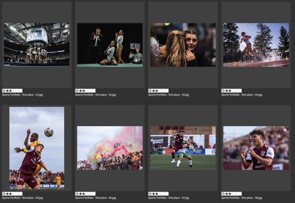 - (CSPY) College Sports Photographer of the Year – Entries must include a variety of at least 3 different sports represented. Picture story is encouraged, but is not a requirement. If a picture story is included, it must include a title slide.